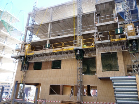 VISITA DE OBRA - ( 7-febrero-2013 ) Se han montado los andamios del patio interior y se continua con la fachada de ladrillo caravista VISITA DE OBRA - ( 13-febrero-2013 ) Se continua con la fachada de ladrillo caravista de la fachada del portal 5 y 6