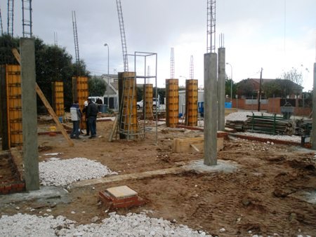 Se estan levantando los pilares de los diferentes forjados de cubierta,