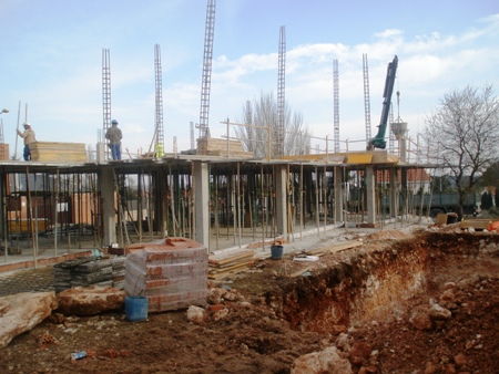 Se esta hormigonando el primer forjado y preparando los pilares de la planta primera y cubierta. Se ha colocado el cartel de obra del estudio.
