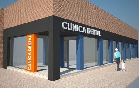 para una clínica dental. Con sala de espera, despacho de ventas,