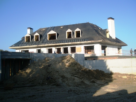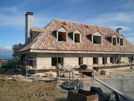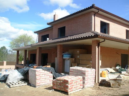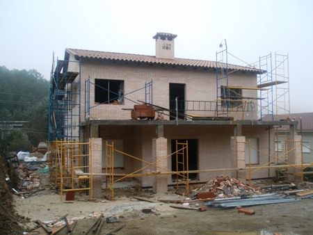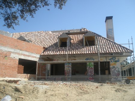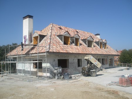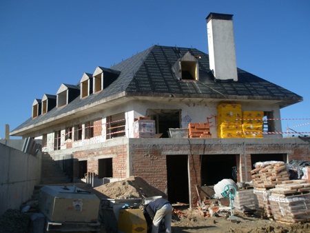 Se esta colocando la teja en toda la cubierta de la vivienda, clavada sobre rastreles de pvc, la semana que viene comienza a colocarse el ladrillo cara vista para ir cerrando el edificio. Se estan terminando de colocar las instalaciones de fontanería y electricidad.