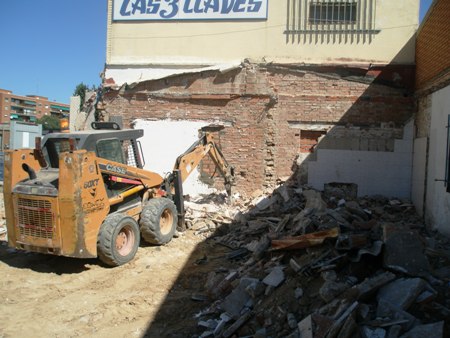 VISITA DE OBRA - OFICINA PARA TALLER MECANICO EN MOSTOLES (20-septiembre-2011) Se ha comenzado la obra derribando la oficina existente , dejando la nave principal al margen de la obra.