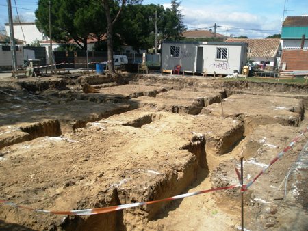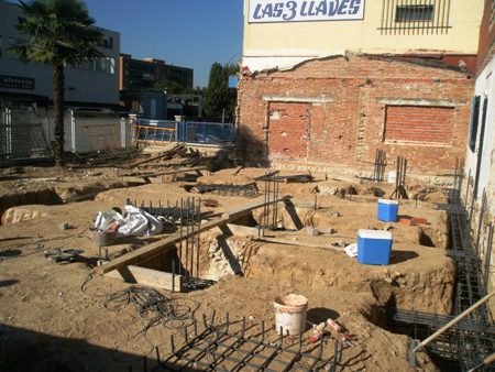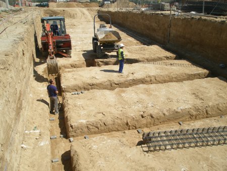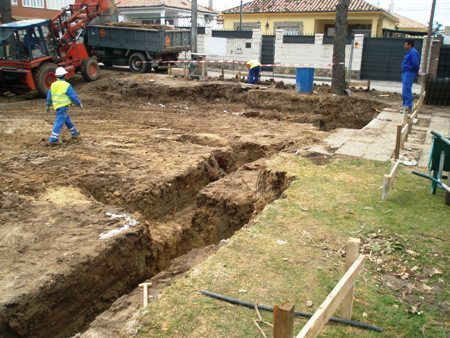VISITA DE OBRA - OFICINA PARA TALLER MECANICO EN MOSTOLES (4-octubre-2011) Se ha comenzado la cimentación de las oficinas , con la excavación de las zapatas y el rplanteo de los pilares