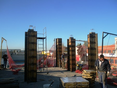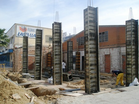 VISITA DE OBRA - OFICINA PARA TALLER MECANICO EN MOSTOLES (11-octubre-2011) Se han terminado de hormigonar los pilares de planta baja y se esta preparando el encofrado del forjado de la planta primera.