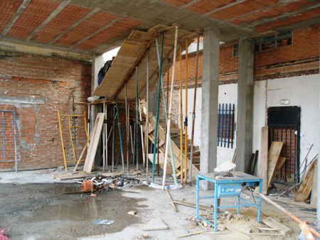 Ya se ha hormigonado el forjado de cubierta y se estan realizando la tabiquería interior , para comenzar con las instalaciones y los acabados interiores.