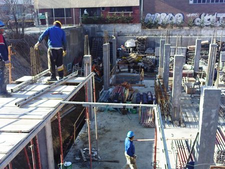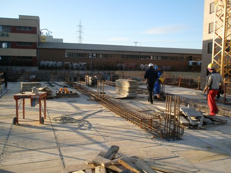 VISITA DE OBRA - OFICINA PARA TALLER MECANICO EN MOSTOLES (19-octubre-2011) El forjado de planta primera esta completamente terminado a falta de hormigonar
