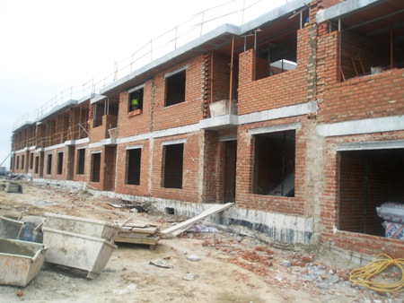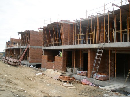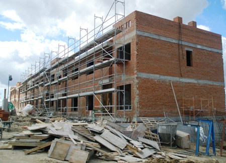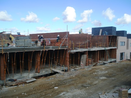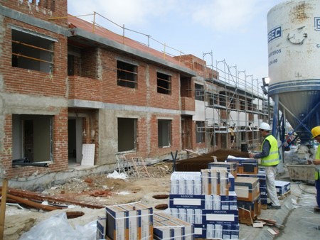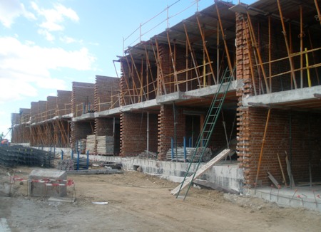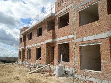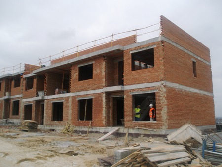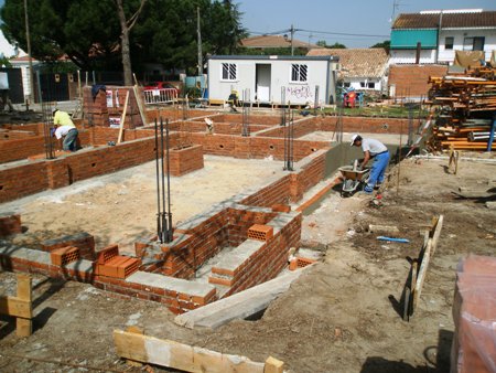 Nos han encargado la dirección de las obras de 8 viviendas unifamiliares adosadas que han comenzado este mes de enero. La estructura es de muros de carga de ladrillo , con muros perimetrales de hormigón armado. forjados unidireccionales con 2 plantas sobre rasante..