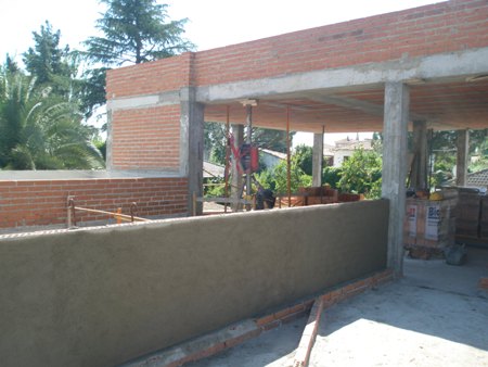 Los muros de la pista de padel ya se han terminado, así como la ampliación de la terraza de planta baja y el sótano. se estan realizando las distribuciones interiores .