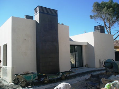 SEPTIEMBRE - 2011 VISITA DE OBRA - VIVIENDA UNIFAMILIAR EN EL ALAMO (27-Septiembre-2011) Se han realizado los aplacados de piedra y los acabados interiores.