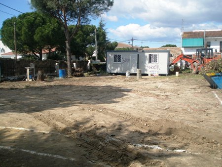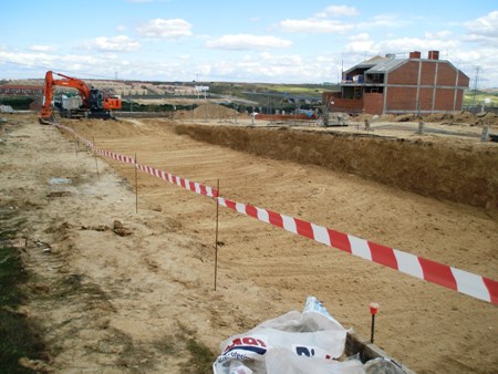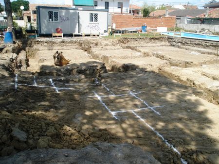 COMIENZO DE OBRA (fase-3)- 6 VIVIENDAS UNIFAMILIARES ADOSADAS EN ARROYOMOLINOS URBANIZACION LA RINCONADA ( 29-marzo-2011 ) Nos han encargado la sigiente fase de una serie de adosados en Arroyomolinos en la urbanización la Rinconada, se estan realizando las obras de una primera fase formada por 8 viviendas unifamiliares adosadas y justo en las parcelas de enfrente comenzamos la obra de 6 viviendas unifamiliares adosadas, con un diseño similar pero adaptado a las nuevas dimensionas de las parcelas. Se ha comenzado a realizar la excavación de la huella de las viviendas para comenzar con la cimentación de los muros del sótano.