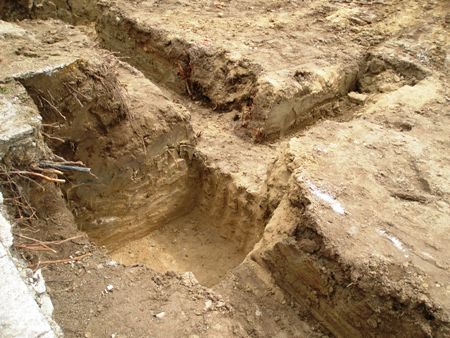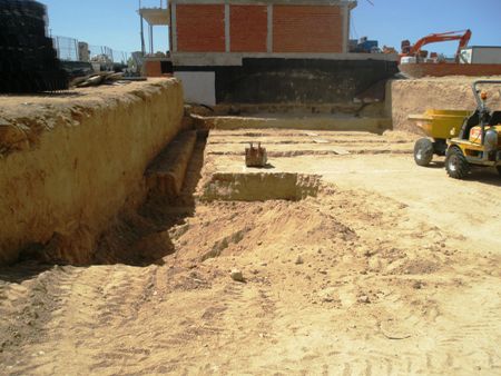 VISITA DE OBRA - VIVIENDA UNIFAMILIAR EN EL ALAMO (28-marzo-2011) Se ha realizado la excavación general de la vivienda y comenzado el replanteo de las zapatas. Se ha excavado las primeras zapatas para buscar el terreno firme , y confirmar los datos que teniamos del estudio géotecnico. En las fotografias se puede observar como cambia el color de las tierras cuando se ha encontrado el terreno firme.