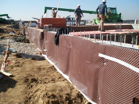 VISITA DE OBRA - VIVIENDA UNIFAMILIAR EN EL ALAMO (8-abril-2011) Se ha finalizado la cimentación y se he comenzado a preparar los muros de apoyo del forjado sanitario , asi como el enfoscado y la preparación de la canaleta de recogida de aguas en la impermeabilización de los muros perimetrales.