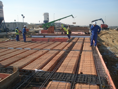 VISITA DE OBRA (Fase-5) - 4 VIVIENDAS UNIFAMILIARES EN ARROYOMOLINOS URBANIZACION LA RINCONADA (13-septiembre-2011 ) Se han comenzado a realizar los forjados de planta baja apoyados en los muros perimetrales de carga.