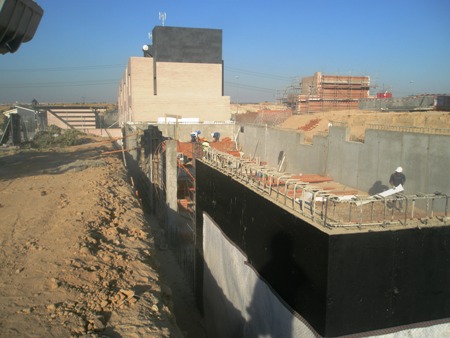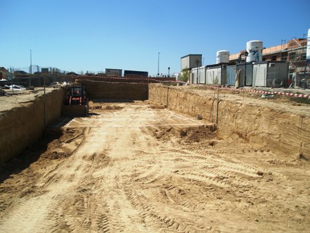 JULIO - 2011 VISITA DE OBRA - RESIDENCIA DE MAYORES EN FUENLABRADA (14-junlio-2011 ) se estan realizando los muros de contención perimetrales que lindan con las parcelas colindantes mediante muros de hormigon mediante bataches