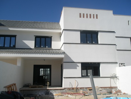 VISITA DE OBRA - 8 VIVIENDAS UNIFAMILIARES EN ARROYOMOLINOS URBANIZACION LA RINCONADA (10-Mayo-2011 ) se continua con el revestimiento exterior de las fachadas y se ha comenzado con los alicatados y pavimentos cerámicos..