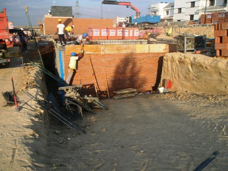 AGOSTO - 2011 VISITA DE OBRA (Fase-5) - 4 VIVIENDAS UNIFAMILIARES EN ARROYOMOLINOS URBANIZACION LA RINCONADA (24-agosto-2011 ) Se ha terminado la cimentación de los primeros adosados y comenzado con los muros de sótano perimetrales.