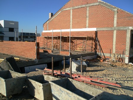 Se estan realizando los cierres de parcela y ya se han realizado la formación de pendiente de la cubierta superior. La tabiquería interior esta totalmente acabada y a partir de esta semana se empezaran a realizar las rozas para las instalaciones.