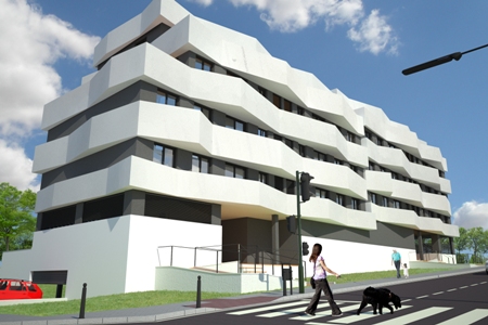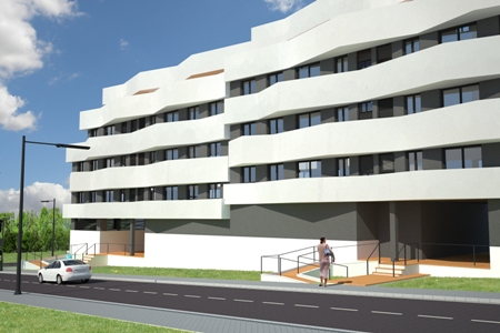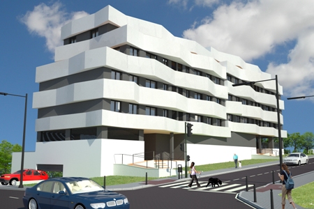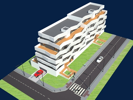 NUEVO PROYECTO - EDIFICIO DE 27 VIVIENDAS VPPL EN VALDEMORO (22-Noviembre-2011) Nos han encargado la realización del estudio de un edificio de viviendas de protección publica VPPL en la localidad de Valdemoro , con garaje y trastero. Se ha comenzado con una imagén moderna dentro de una Normativa urbanística , severamente limitada por un planeamiento estricto y encorsetado . se han realizado los planos de planta y las imagenes 3D de los primeros estudios.