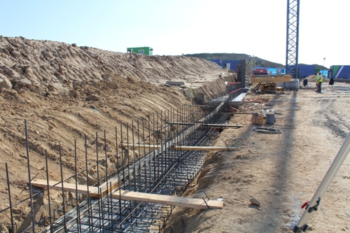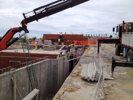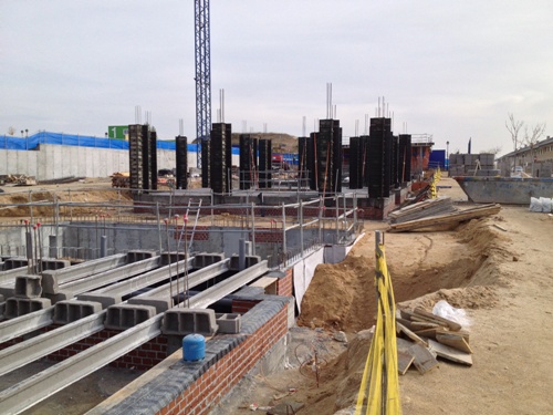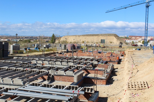 VISITA DE OBRA - VIVIENDAS ADOSADAS VPPL EN LA URBANIZACION "LA RINCONADA II" DE ARROYOMOLINOS (13-febrero-2014) Se ha realizado la cimentación de la primera fase y comenzado con los muros perimetrales de sótano y contención de tierras.
