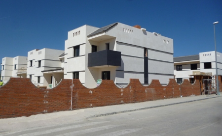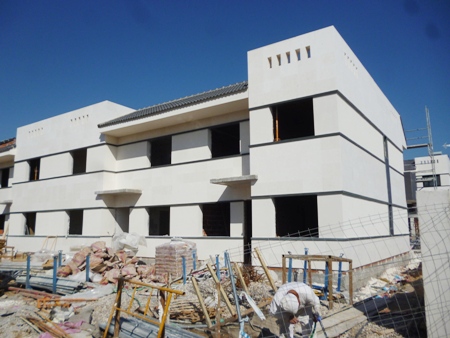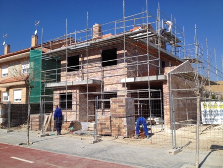 VISITA DE OBRA - 11 VIVIENDAS EN VILLAVICIOSA DE ODON ( 18-febrero-2014 ) Las fachadas estan completamente acabadas y se esta realizandose los muros exteriores de urbanización.