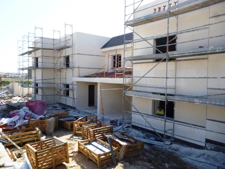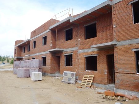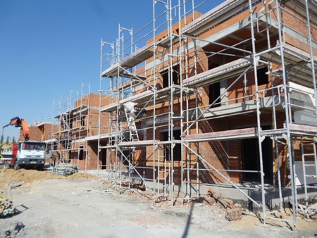 VISITA DE OBRA - 38 ADOSADOS EN ARROYOMOLINOS (25=Noviembre-2014 ) Dos vistas de las dos lineas de viviendas de la obra en diferentes fases de ejecución.