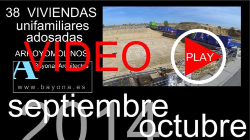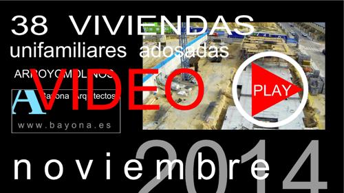 VIDEO DEL ESTADO DE LAS OBRAS - 38 ADOSADOS EN ARROYOMOLINOS ( 22=Noviembre-2014 ) Se ha realizado un video aereo del estado de las obras tomado el dia 22 de Noviembre,Se puede ver como en los ultimos 20 dias se ha avanzado la obra a muy buen ritmo y ya se ha comenzado con el forjado de planta primera de las viviendas 36-37 y 38.