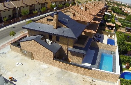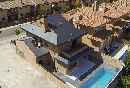 VISITA DE OBRA - VIVIENDA UNIFAMILIAR EN ARROYOMOLINOS ( 28-Abril-2014 ) Se ha comenzado con la colocación de la pizarra de la cubierta, mientras se van ejecutando las instalaciones interiores