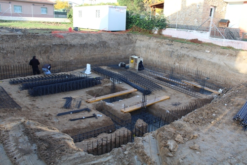 VISITA DE OBRA - VIVIENDA UNIFAMILIAR EN LA URBANIZACION LA CABAÑA ( 25=Noviembre-2014 ) Se esta realizando la cimentación del sótano y se ha preparado para el hormigonado de las zapatas centrales y las del muro corrido perimetral .