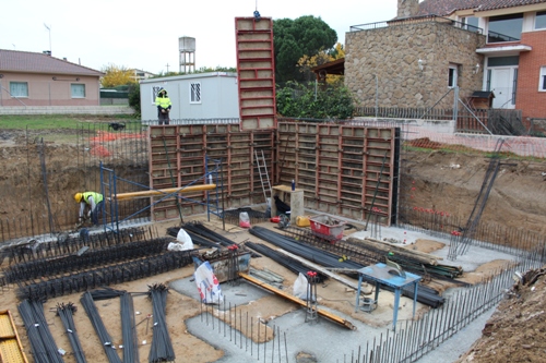 VISITA DE OBRA - VIVIENDA UNIFAMILIAR EN LA URBANIZACION LA CABAÑA ( 2=Diciembre-2014 ) Se Continua con el hormigonado de los muros de sótano y se realizará mediante bataches y muros de hormigón a una cara vista la medianera con la vivienda colindante , para la realización del muro de la rampa del garaje .
