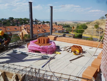 VISITA DE OBRA - 31 VIVIENDAS ADOSADAS VPPL EN LA URBANIZACION "LA RINCONADA II" DE ARROYOMOLINOS ( 20-Marzo-2014 ) Le estructura avanza a buen ritmo y solo queda el forjado de cubierta de las primeras 3 viviendas.