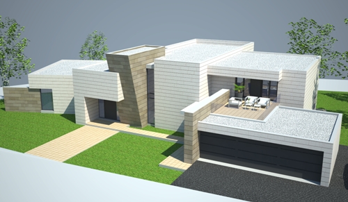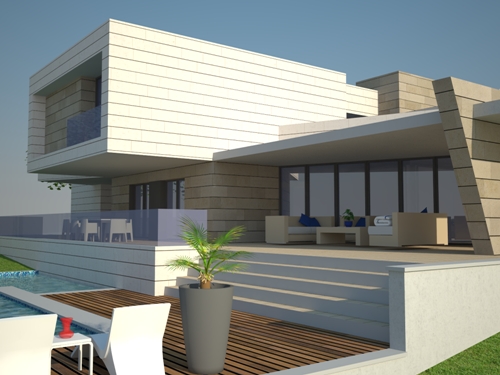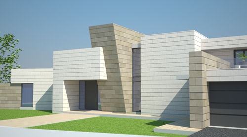 PRIMERA PROPUESTA - REFORMA DE VIVIENDA UNIFAMILIAR EN VILLAVICIOSA DE ODON ( 18-Febrero-2014 ) Se ha realizado los primeros bocetos de la propuesta con un cambio total de la imagen de la vivienda , manteniendo la volumetria existente. La propuesta palntea el forrado de la fachada con aplacado de piedra caliza blanca y caliza ocre.