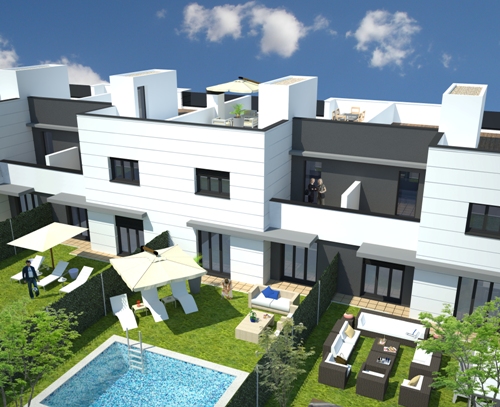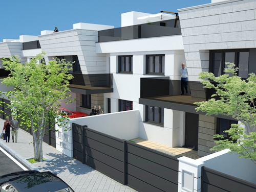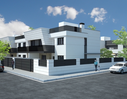 DICIEMBRE - 2014 NUEVO PROYECTO - 20 VIVIENDAS UNIFAMILIARES EN MOSTOLES ( 5=Diciembre-2014 ) Estamos realizando el proyecto de 20 viviendas unifamiliares adosadas en una parcela del Pau-4 de Mostoles .Ya se esta realizando el proyecto y se han terminado las imagenes en 3d .