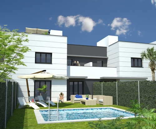 NUEVAS IMAGENES - ADOSADOS EN ARROYOMOLINOS (30-MAYO-2014 ) Se han realizado nuevas imagenes de las viviendas en esquina con el tratamiento especial de los casos particulares de la promoción .
