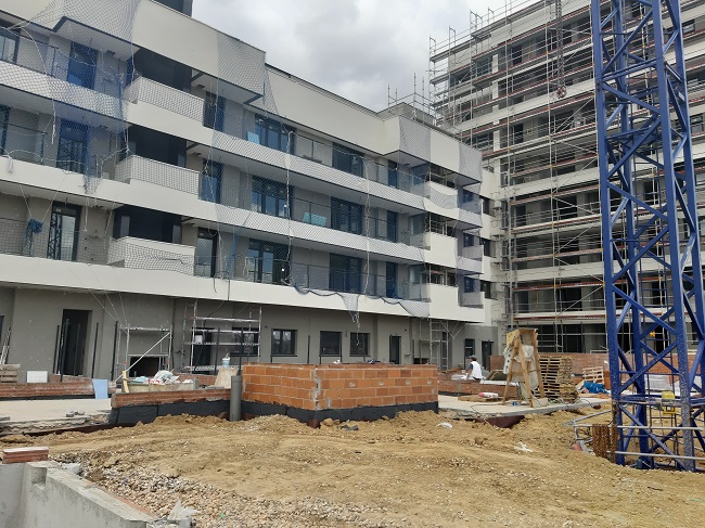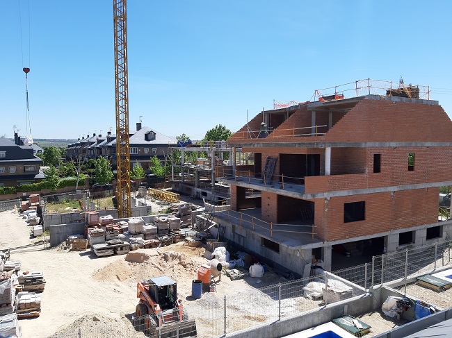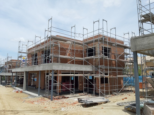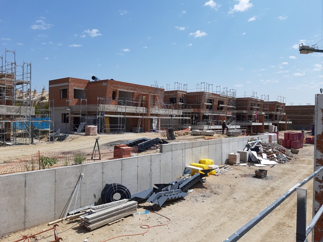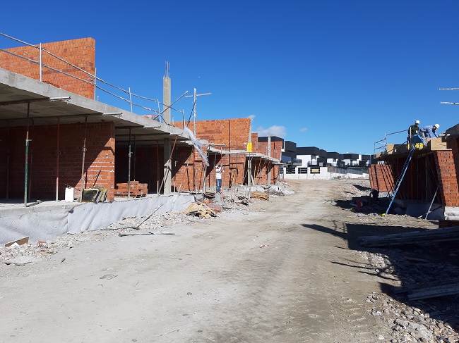 DE OBRA Se esta terminando la estructura de las ultimas viviendas y se ha comenzado con los cierres de las fachadas de las primeras viviendas..