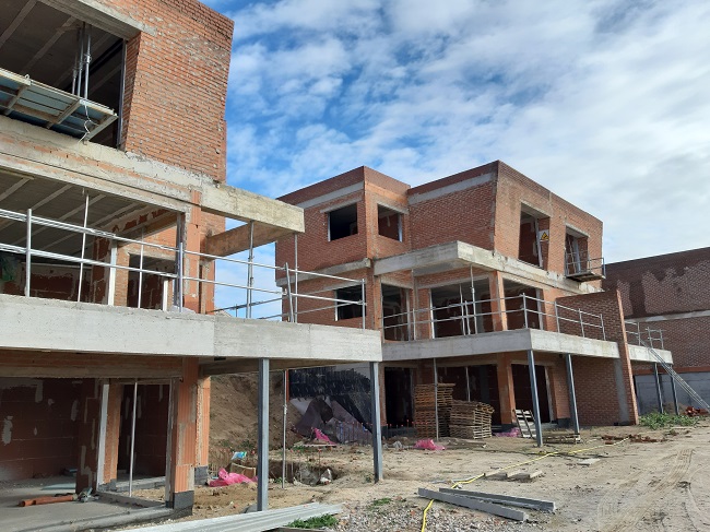 DE OBRA Se continua la obra , finalizando la fachada de ladrilo de todas las viviendas.