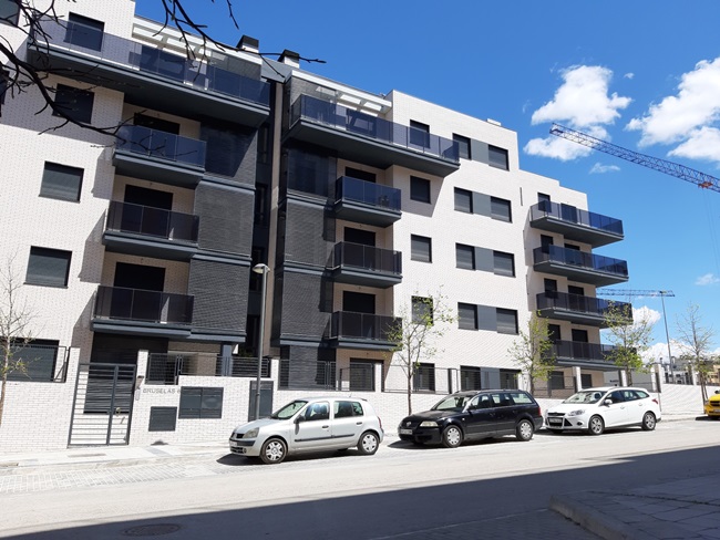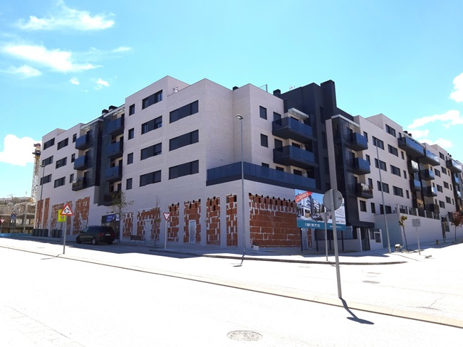 DE OBRA Se ha finalizado las fachadas de ladrillo caravista de las ultimas viviendas del conjunto.