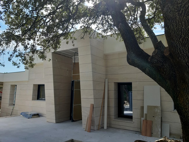 DE OBRA Se continua la obra , con el mortero monocapa de las fachadas
