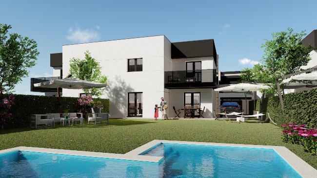PROYECTO Nuevo proyecto de 38 viviendas en Navalcarnero, Se trata de un conjunto de viviendas unifamiliares en planta baja , en parcelas independientes. Parta la comercialización de las viviendas se han realizado imagenes 3D de los interiores y un video de los exteriores.